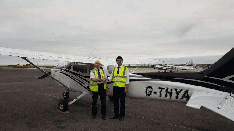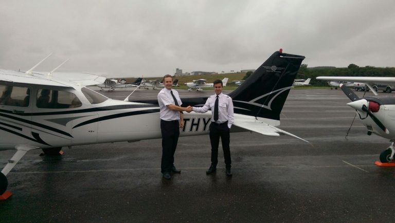 Congratulations to Turkish Airlines cadet Ilker Tasci who completed his first solo at the academy this week in G-THYA. Ilker pictured here with crew rostering manager Rob O’Connor.