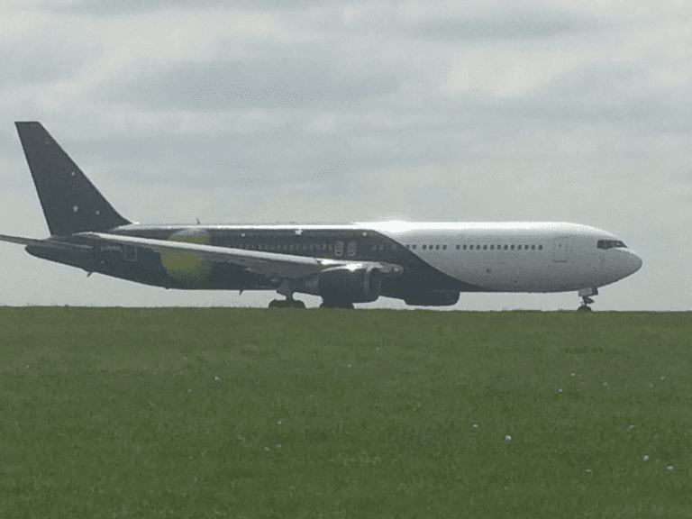 A rare visitor to EICK today as Titan Airways G-POWD brings the crew and cast of star wars from Belfast to Cork for filming. G-POWD is a Boeing 767-36NER.