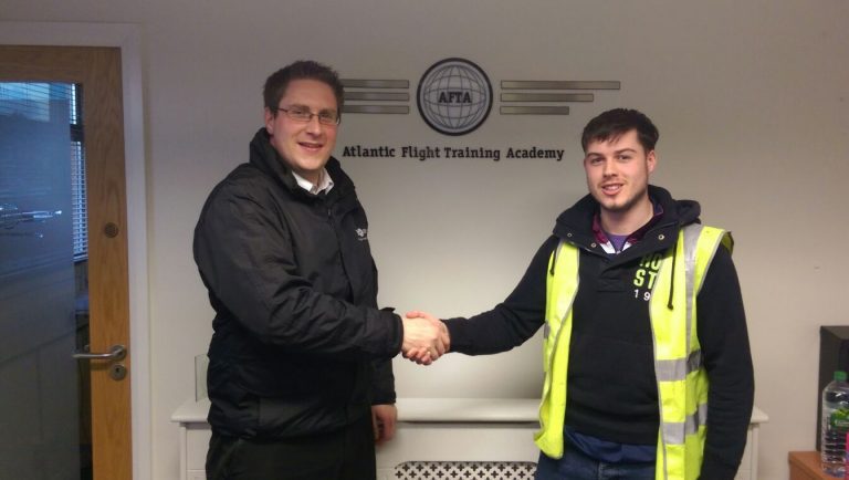 Well done to AFTA PPL student Kevin O’Connor who went solo yesterday at the academy. Kevin pictured here with instructor Cian Murray.
