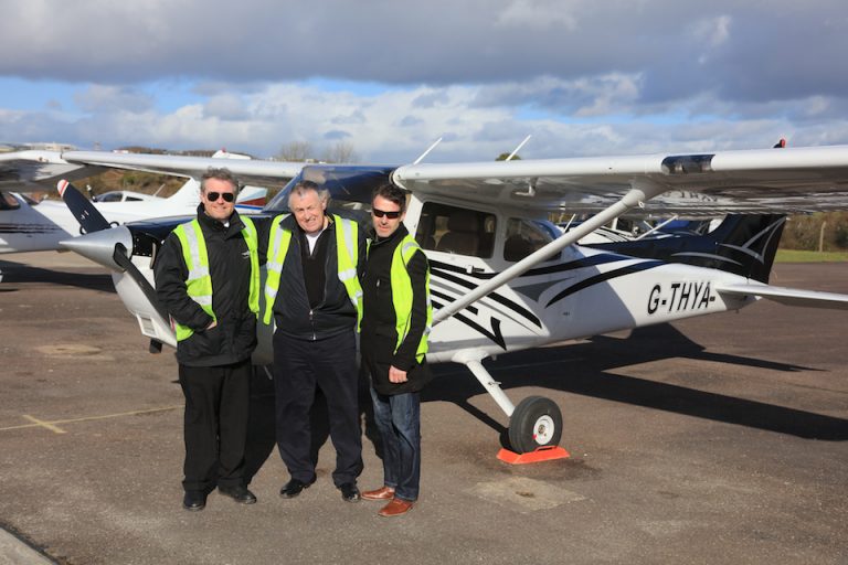 Another successful photo flight completed for aerial photographers Dennis Horgan and Conor Sheridan yesterday at AFTA, pictured here with Senior Instructor Barry Twomey.