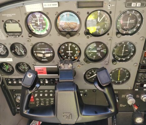 Hi all, welcome back. Following a highly enjoyable few weeks completing my PIC module (Pilot in Command), my next stage is SEIR (Single Engine Instrument Rating). SEIR is where we learn to fly the plane almost entirely without looking out the window. We complete departures, cross country navigations, approaches, etc. all with reference to the instruments in the cockpit. In AFTA we have two types of cockpit in the Cessna’s, the conventional and the glass cockpit, Garmin G1000, both shown below. For those of you worried, take off and landing are still completed visually.